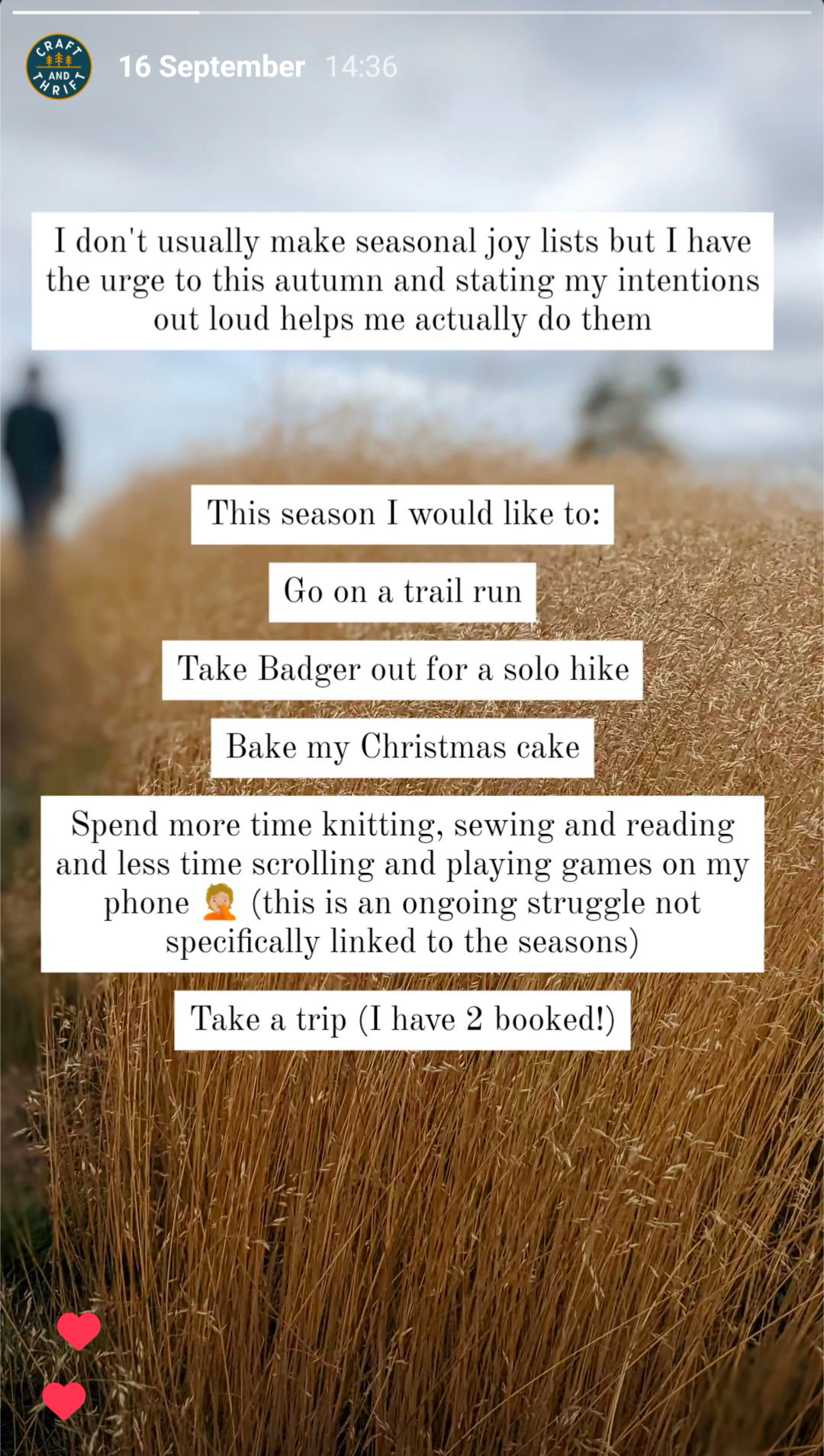 I wrote back on 16 September, over on Instagram, about my Autumn joy list. This is a spin-off of the A Beautiful Mess blog seasonal bucket list idea, where you make a list every season of things you would like to do for fun, joy, or to create memories. I’ve never officially interacted with this concept, but I’ve always loved hearing Emma and Elsie (the sisters who own A Beautiful Mess) talking about it, and their specific plans for that season.