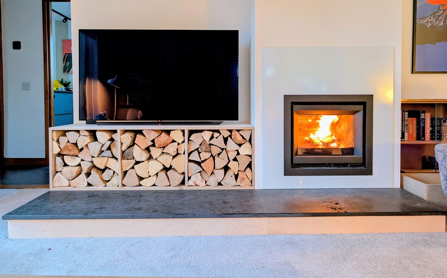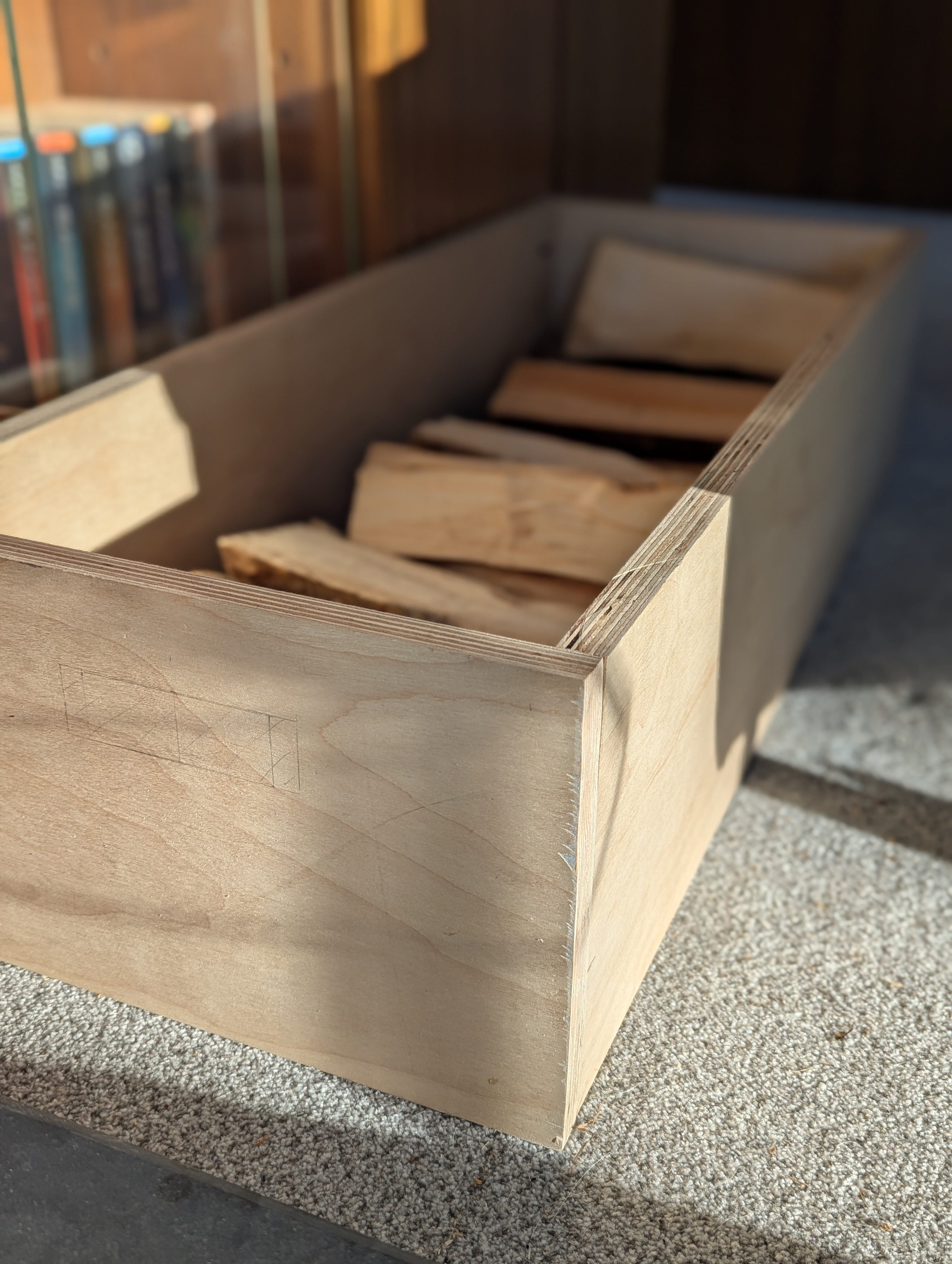Speaking of the stove, we finished the plywood TV unit/wood store and I love how smart and functional it is! I made a trial run log store box (see below) and then once I felt confident with the pocket hole jig, upgraded to this structure. It took around 2 days to build, but I feel like I've unlocked a skill and I'll definitely be making more furniture to match.