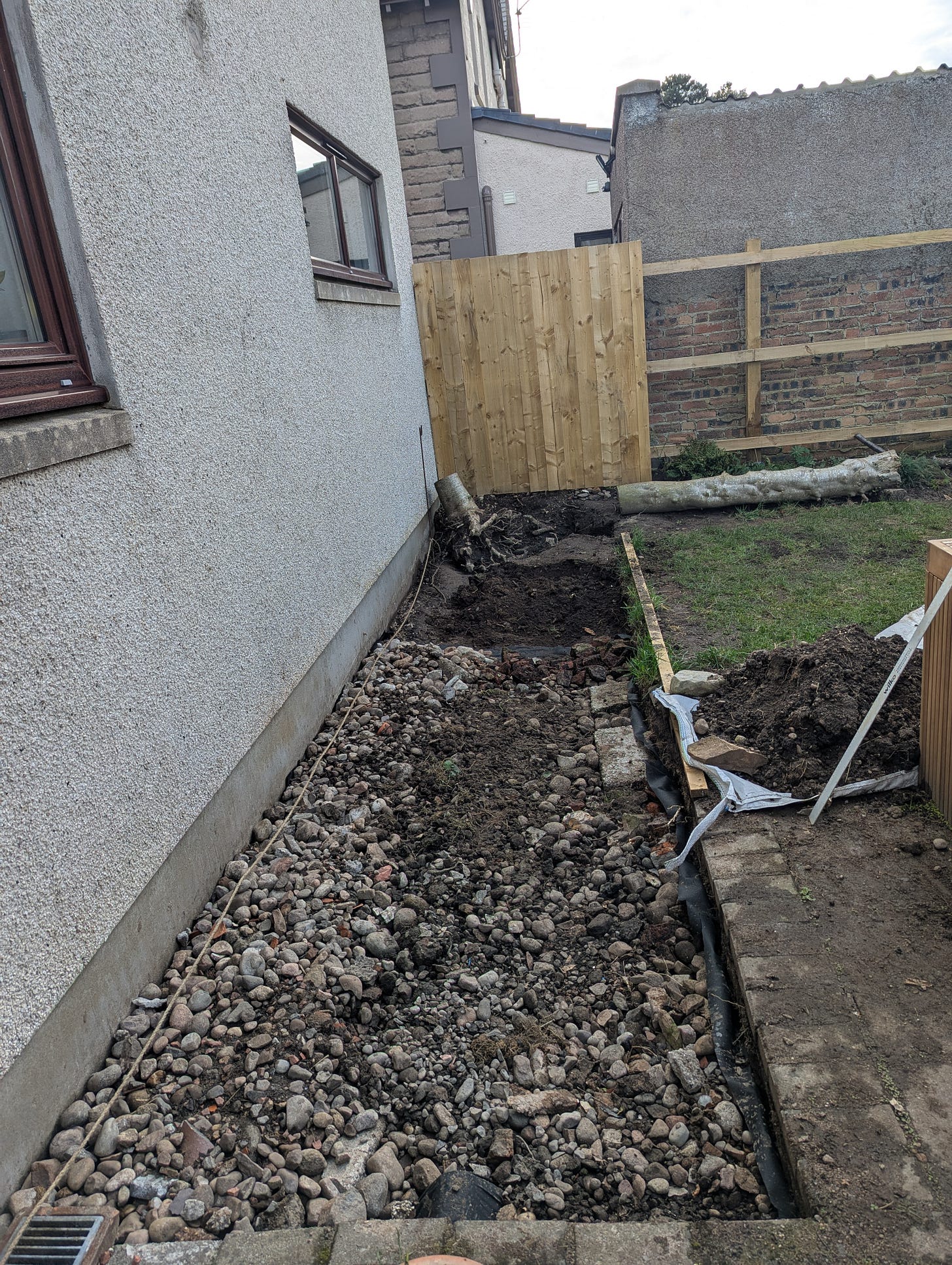 Most of my garden time is being spent on building a patio here, to replace a sad collapsed flower bed, minimise damp to the house and maximise the evening sunbeams. I'm waiting on my father-in-law to help us move that holly stump and I need to buy aggregate (crushed stone) and sand before I can continue. Then it'll be a case of layering aggregate, then sand, compacting it all down and then laying my bricks and paving slabs. It's going to be so smart when it's done, fingers crossed!