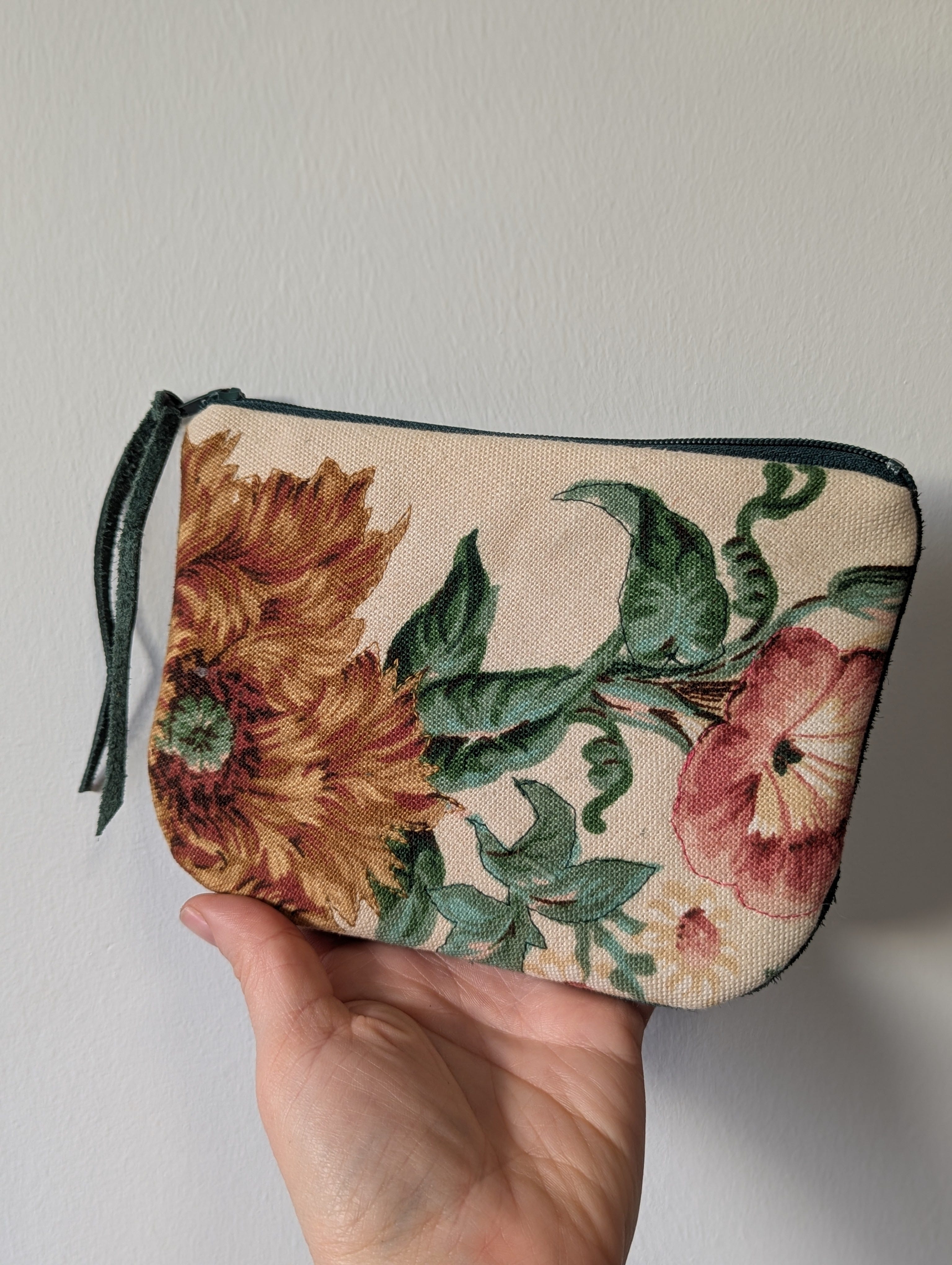 I also made this little zippered pouch, from vintage floral fabric (I experimented with sewing around some of the design to highlight it but it was a bit of a flop) and remnant leather. I don't love the end result but it's good enough. I gave it away in the end, but it was nice to get back into the swing of sewing zippers and swearing at my machine as it struggles to sew leather (the back of the pouch is green leather).
